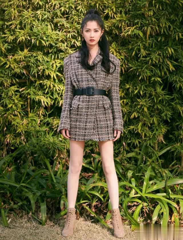 “下衣失踪”的穿法很显身材比例,她的大长腿得以完美展现,十分养眼。格纹外套酷帅,腰间系上腰带收腰,小蛮腰着实令人羡慕。