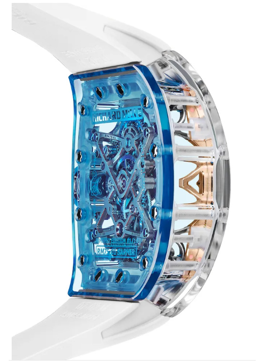 全新RM75-01浮动陀飞轮蓝宝石水晶腕表问世,理查米尔再次以先锋理念打破材质、机械与美学的传统边界,以蓝宝石水晶的通透性展开画布,运用哥特建筑的力学智慧为笔触,以海洋的流动诗意为色彩,构建了一部“悬浮的机械交响曲”。
